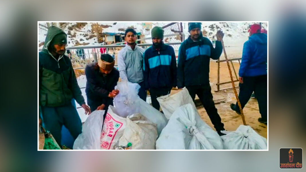 - दुर्गम रास्तों पर सफाई: सफाई कर्मियों ने अत्यधिक ठंड और बर्फबारी के बीच स्कीइंग स्लोप से लेकर गौरसों बुग्याल तक फैले कचरे को बोरियों में भरकर मुख्य सड़क तक पहुँचाया।