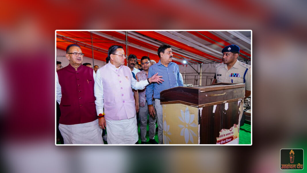 - स्थलीय निरीक्षण: सीएम धामी ने जसवंत ग्राउंड में बन रहे मुख्य मंच, वीआईपी दीर्घा और आम जनता के बैठने की व्यवस्था का जायजा लिया। इसके बाद उन्होंने डाट काली मंदिर तक के मार्ग का निरीक्षण किया, जहाँ प्रधानमंत्री के दर्शन और पूजन का कार्यक्रम प्रस्तावित है।
