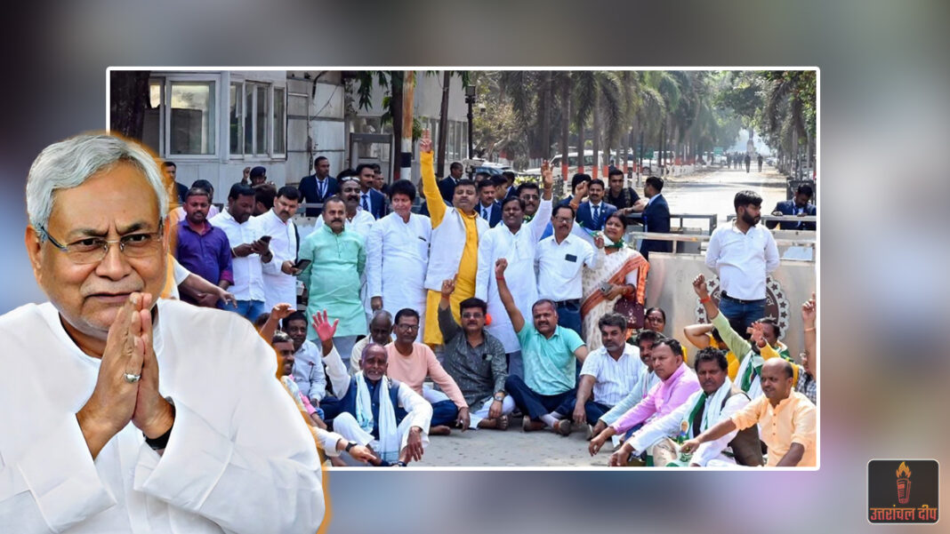 राजधानी पटना में JDU कार्यालय और मुख्यमंत्री आवास के बाहर भारी संख्या में जुटे कार्यकर्ता और नेता नेतृत्व के प्रति नाराजगी जता रहे हैं।