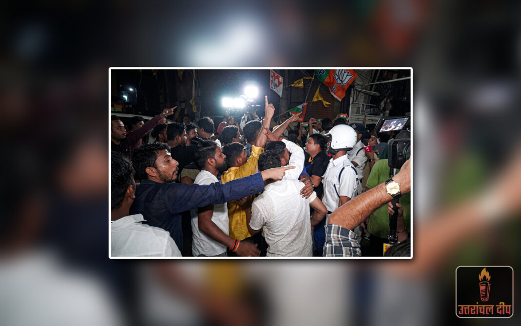 - सीधी भिड़ंत: देखते ही देखते दोनों दलों के कार्यकर्ता आमने-सामने आ गए। कार्यकर्ताओं के बीच जमकर धक्का-मुक्की हुई और एक-दूसरे के खिलाफ भड़काऊ नारेबाजी की गई। भाजपा समर्थकों ने भी जवाब में ‘जय श्री राम’ के नारे लगाए, जिससे पूरे इलाके में अफरा-तफरी मच गई।
