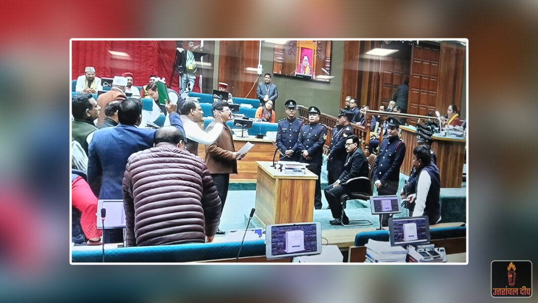 भराड़ीसैंण (गैरसैंण): उत्तराखंड विधानसभा का बजट सत्र बुधवार को भारी हंगामे और तीखी नोकझोंक के बीच शुरू हुआ। सदन की कार्यवाही शुरू होते ही विपक्ष ने सरकार को विभिन्न जनमुद्दों पर घेरना शुरू कर दिया, जिसमें पुलिस कांस्टेबल ग्रेड-पे का प्रकरण सबसे प्रमुख रहा। विपक्ष ने आरोप लगाया कि सरकार लंबे समय से पुलिस कर्मियों की जायज मांगों को नजरअंदाज कर रही है, जिससे उनके मनोबल पर विपरीत असर पड़ रहा है।