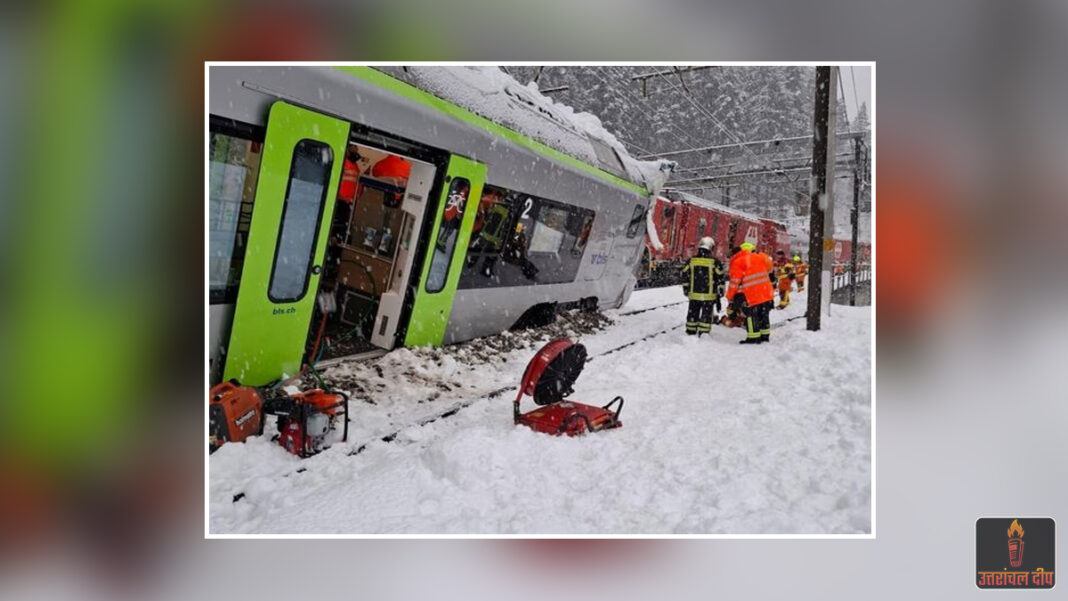 बर्न (स्विट्जरलैंड): स्विट्जरलैंड के पहाड़ी क्षेत्र में एक भीषण रेल दुर्घटना की खबर सामने आई है। भारी बर्फबारी के बाद आए एक शक्तिशाली हिमस्खलन (एवलांच) की चपेट में आने से लगभग 80 यात्रियों को ले जा रही एक पैसेंजर ट्रेन पटरी से उतर (डिरेल) गई। इस हादसे में कई यात्रियों के घायल होने की सूचना है, जिनमें से कुछ की हालत गंभीर बताई जा रही है। बर्फीले इलाके और दुर्गम रास्तों के कारण राहत और बचाव कार्य में भारी दिक्कतों का सामना करना पड़ रहा है। स्थानीय प्रशासन ने पूरे क्षेत्र में रेड अलर्ट जारी कर दिया है।